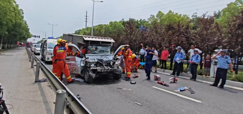 7月14日10 时 08 分许,市 119 指挥中心接警称,奉贤区新四平公路靠近平庄东路路口发生车辆事故,奉贤区消防救援支队接警后立即赶赴现场处置。